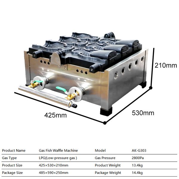 AK-G303 Potatoes Taiyaki Fish Waffle Chips Maker Machine Gas Flip Korean Fish Waffle Cone Machine$115