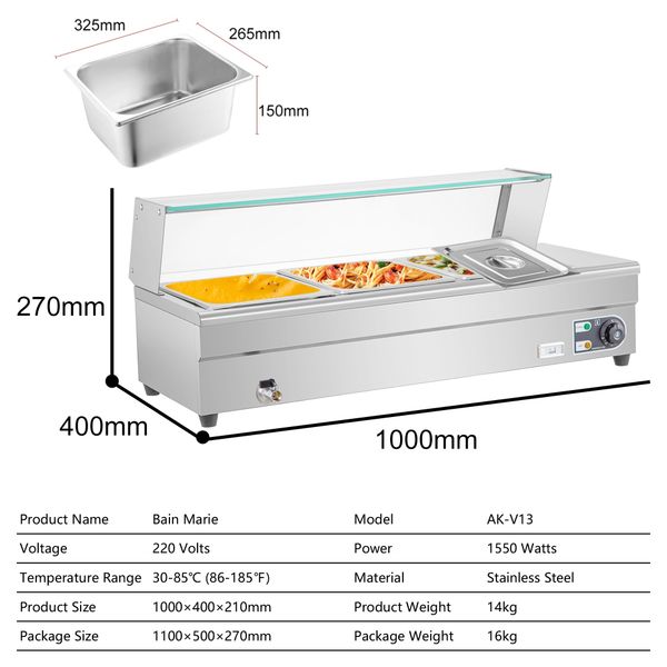 Commercial 6-Pan Stainless Steel Baine Marie Vitrine Warmer 1500W Electric Bain-Marie Lamp for Hotel Use$72