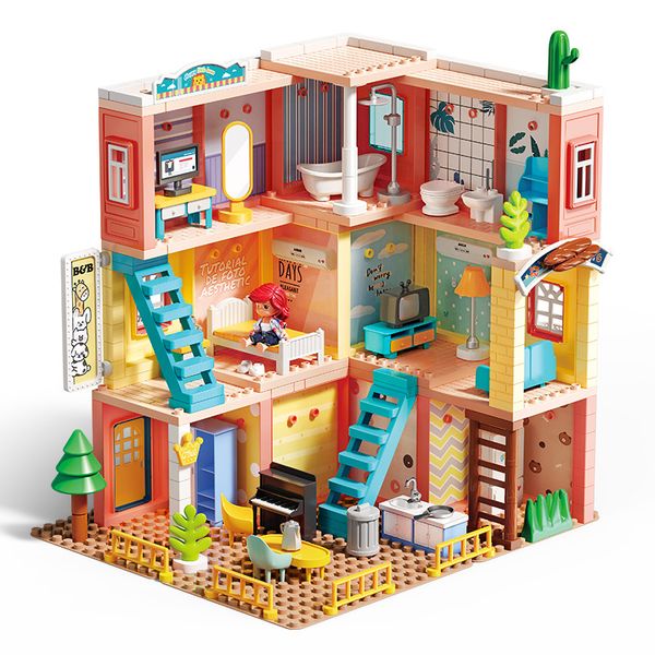 243PCS DIY Doll House Building Blocks Set with Simulated Furniture Villa Princess Castle Play Set for Girl Pretend Play Toys$19.2