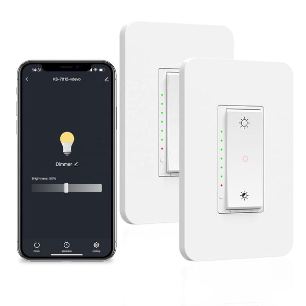 US ETL Tuya 3 Way 2 Way 2 Gang Smart LED Dimmable Wifi Light Switch/Smart Wifi Wall Dimmer Light Switch 15A 100/250V$8.1