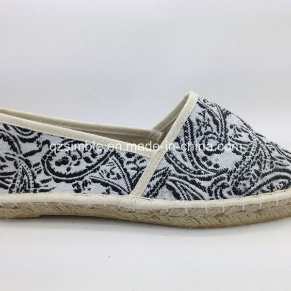 OEM ODM Women's White EVA Jute Braid Sole Flat Casual Shoes Espadrilles Slip-On with Elastic Fabric MADE in BD$9.76