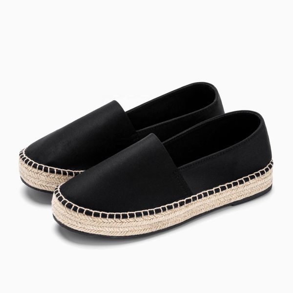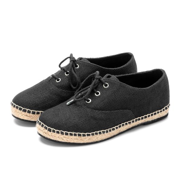 OEM ODM Women's Flat Casual Shoes, Espadrilles, Lace-up Shoes, Jute Sole, Black, Ladies Footwear, Made in Bangladesh$11.53