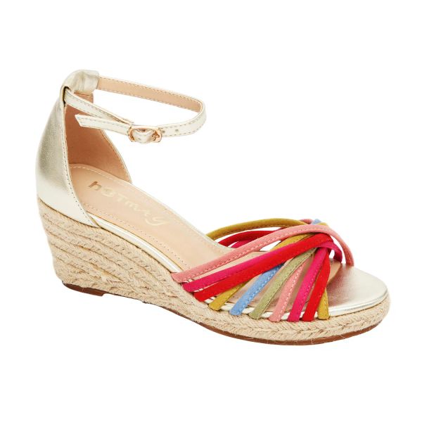 Women Multi Color Wedge Espadrilles with Close Back and Buckle Ankle Strap$7.7