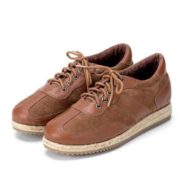 OEM ODM Women's Sporty Flat Casual Shoes in Leather, Breathable Espadrilles, Lace-up Shoe, BROWN, Made in BD$21.75