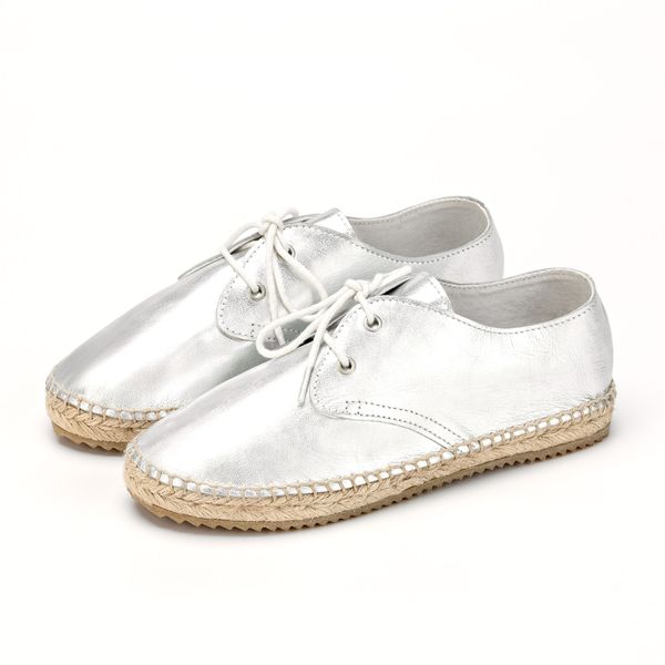 OEM ODM Women's Trendy Canvas Flat Casual Shoes Lace-up Espadrilles with Jute Sole Silver Ladies Footwear Made in Bangladesh$11.95