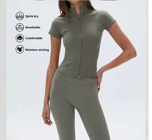 HUACHEN Custom Fitness Short Sleeve Zip up Top Running Training Quick Dry Jacket Yoga Sport Jackets for Women$17.2