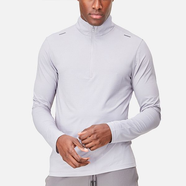 Athletic Fit Mens Shirts Long Sleeve Quarter Zipper Breathable Nylon Gym Shirt Fitness Body Fit Sweatshirt for Men$11.49