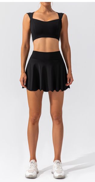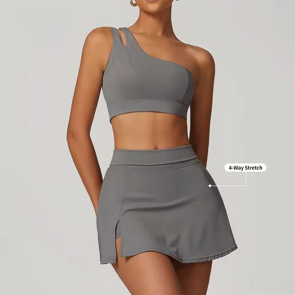 Custom Sportswear Manufacturer High Stretch Quick Dry Nylon Short Skirt and Sports Bra Set Fitness Workout Yoga Wear Suit$20.1
