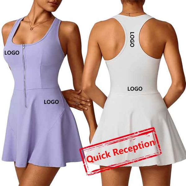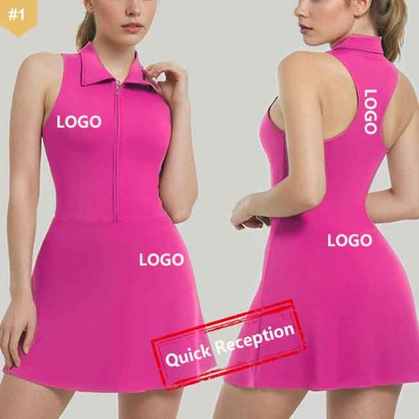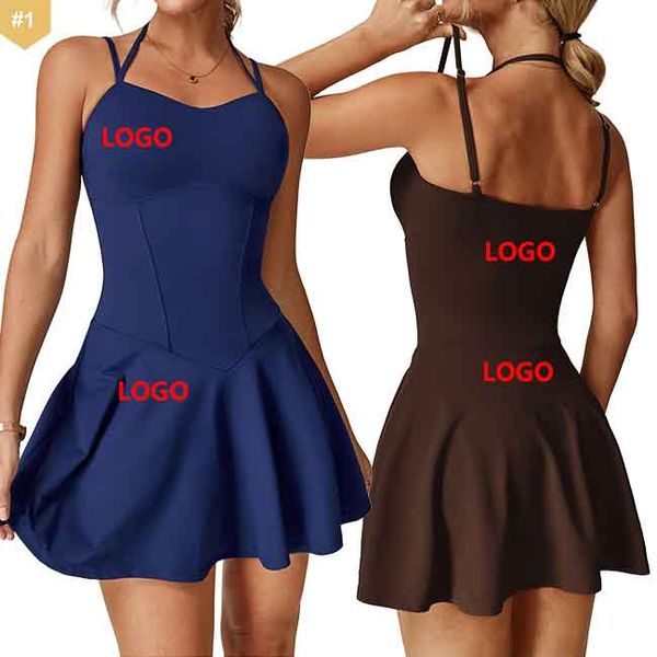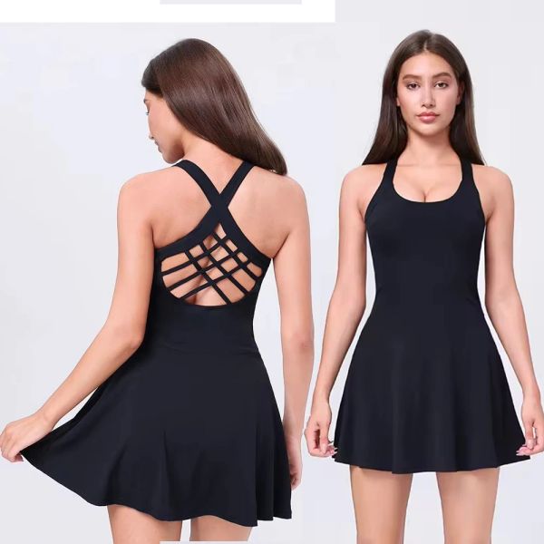 HUACHEN Tennis Wear Beauty Back Gold Dress Lady Cross Back U Neck BadmintonShort Skirt Fitness Jumpsuit Dress with Shorts$11.3