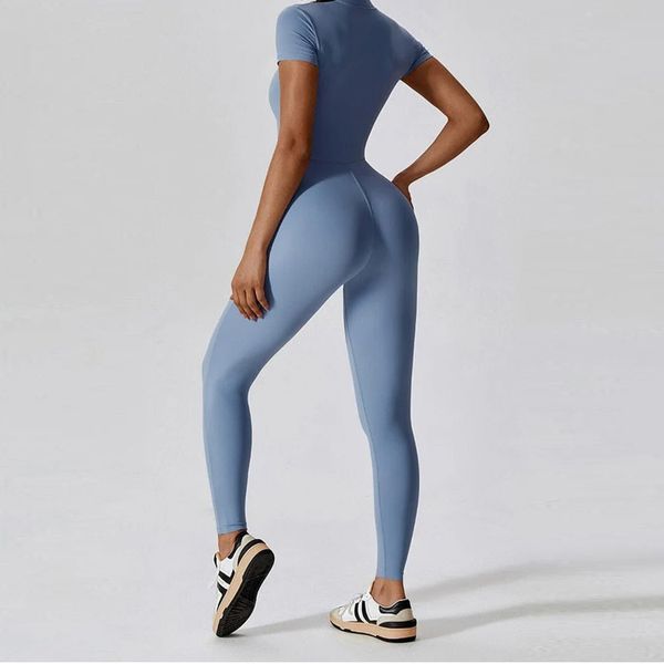 Custom Colors Slim Fit Short Sleeves Jumpsuits Women Fitness Sportswear Half Zip One-Piece Yoga Wear Leggings Bodysuits$10.99