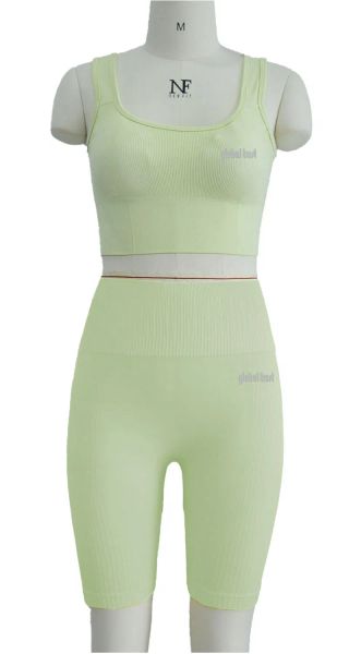 Woman Fitness Clothing Gym Wear Short Sleeve Crop Top Seamless Yoga Fitness Set Shorts for Women$7.5