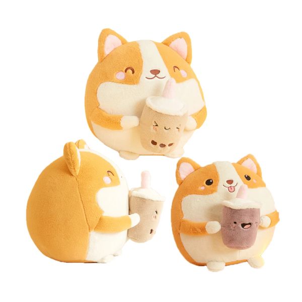 Creative Lovely Funny Animal 30cm Corgi Dog Plush Toy with Boba Bubble Tea Milk Tea Plush Pillow$3.59