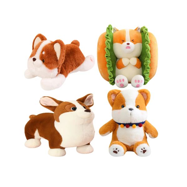 Premium Quality Stuffed Hamburger Corgi Cartoon Cute Short Leg Welsh Corgi Pembroke Puppy Dog Plush Toys Customized Logo Doable$1.95