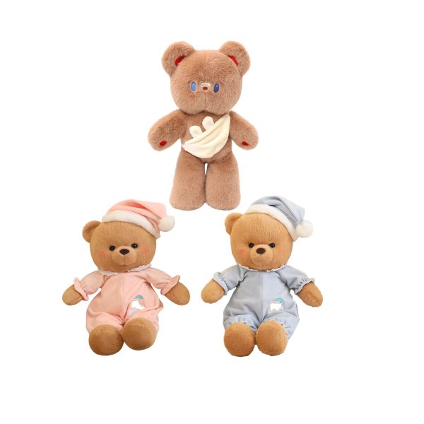 Premium Quality Good Night Brown Bear Stuffed Teddy Bear in Pink Blue Pajamas Cute Blue Eyed Bear Toys With Rabbit Shaped Bag$4.45
