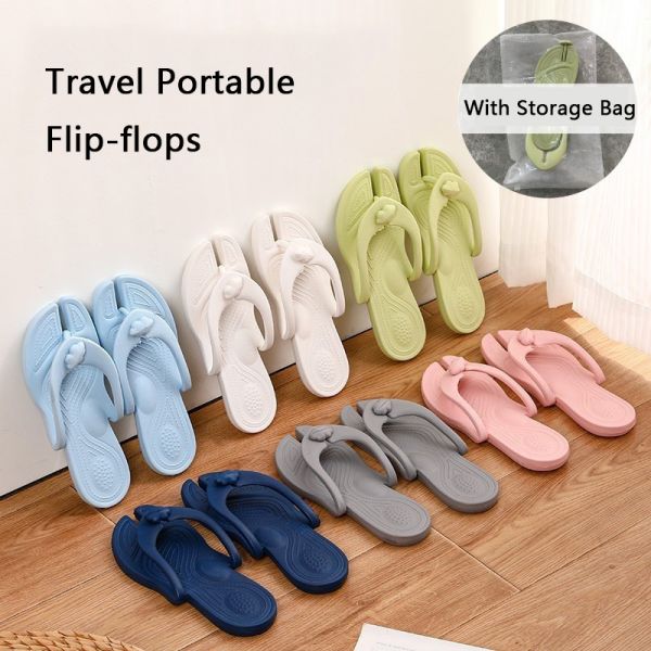 Home Travel Portable Folding Men Women Ladies Thongs Flat Slide Flip-Flops Indoor Outdoor Beach Hotel Couples Sandals Slippers$1.5