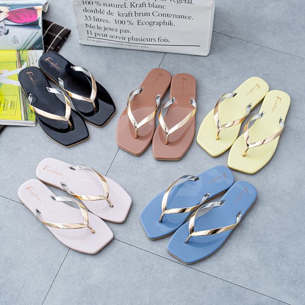 Wholesale Fashion Flip-Flops, Women's Summer Flats Slipper to Wear, Soft Sole Beach Sandals Shoes$1.2