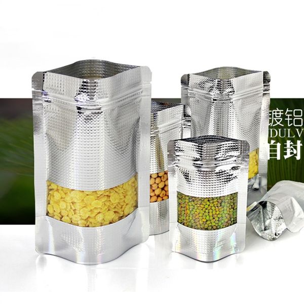 Customized Embossed Silver Foil Stand up Pouch Coffee Herbal Toys Packaging Ziplock Bag with Window$0.03