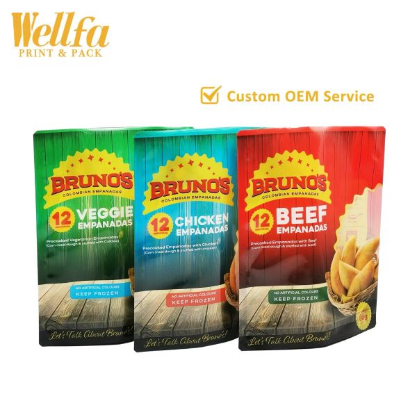 Custom Stand up Frozen Empanada Samosas Fried Fish Shrimp Dumplings Packaging Pouch Frozen Pastry Spring Roll Food Packaging Bag$0.01