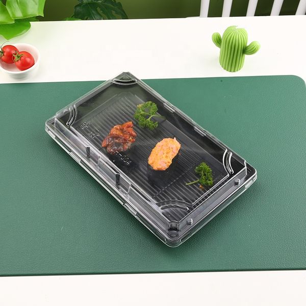 Transparent Plastic Boxes Eco Friendly Food Container New Style Sushi Tray with clear Lid Compostable Deep Sushi Food Tray$0.06