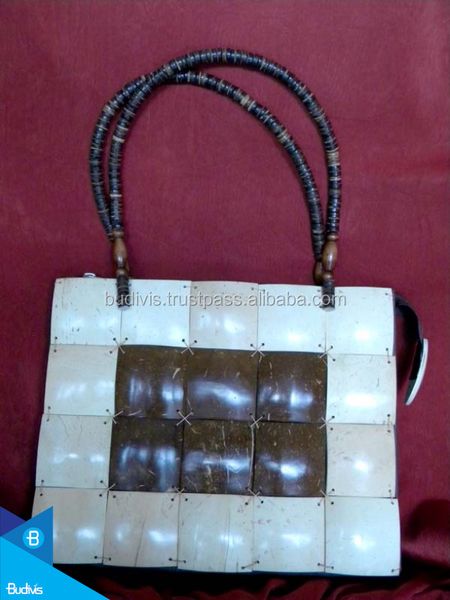 Cheap Natural Coco Shoulder Bag Handmade From Bali Indonesia Beach Bag with Zipper Closure Striped Pattern Women$1.5