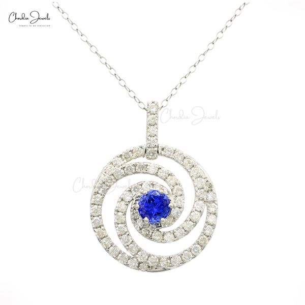 Hallmarked 14k White Gold Genuine Tanzanite & Diamond Halo Spiral Pendant 6mm Prong Set Gemstone Pendant Wholesale Distributors$1962