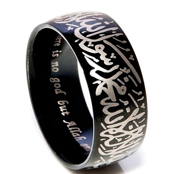 Custom Men's Religious Retro 8mm Black Stainless Steel Islamic Muslim Shahada Ring for Man$2.6