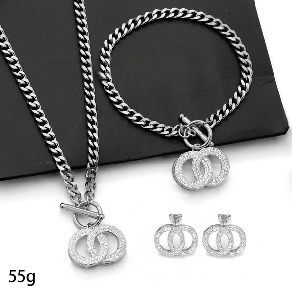 Wholesale Fashion 18k Gold-Plated C Letter Zircon Pendant Stainless Steel Jewelry Set$7.2