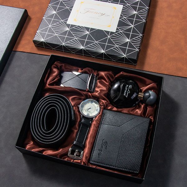 Watch Set Men's Wallet Perfume Keychain Pen Festive Gift Set for Boyfriend Valentine's Day Gift Set$6.5