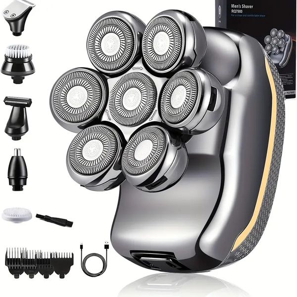 Men's Electronic Head Shaver Razor Rechargeable Cordless Hair Shaving Razors for Bald Man 6 in 1 Wet Dry Beard Trimmer$8.99