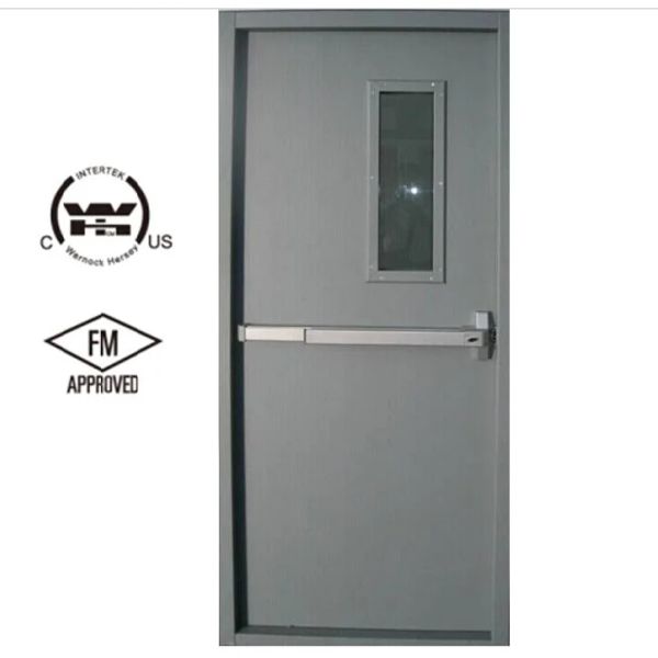 FM Wh Certificate Steel Fire Rated Door Hollow Metal Door with Panic Bar Wire Glass$150