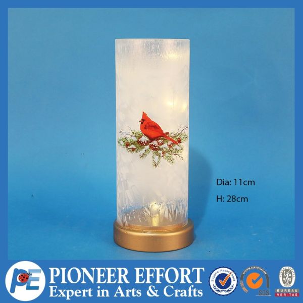 Snow Winter Christmas Glass LED Decoration with Bird and Pine Cone$5