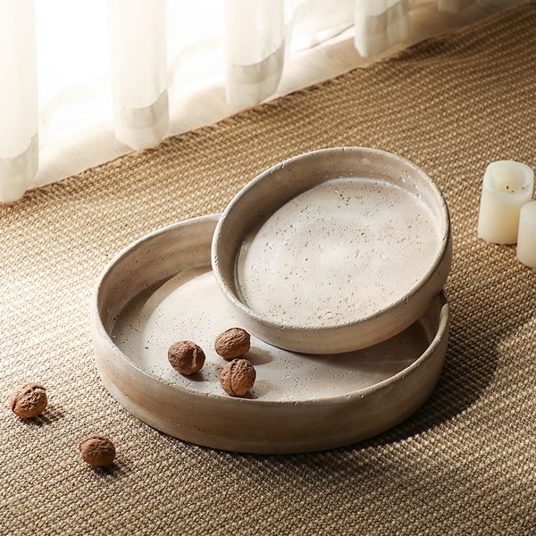 Wholesale Dinnerware Decorative Cement Fruit Plates Wabi-sabi Home Decor Tabletop Decoration Round Dry Fruit Plate$5.9