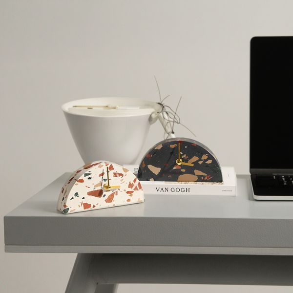 Flolenco Art Home Decor Tabletop Decoration Clock Luxury Decorative Ornaments Terrazzo Desk Clock for Home Living Room$11.2
