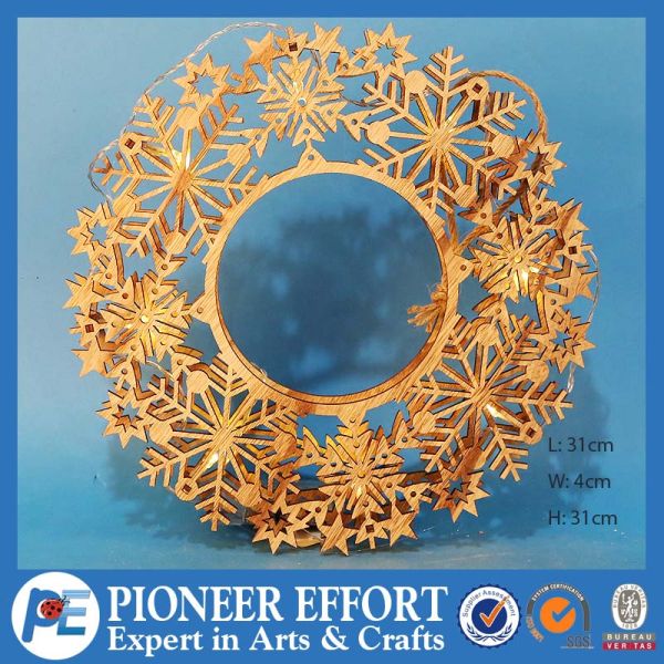 Wooden Christmas Snow Flake Hanging Christmas Tree Decoration with LED Lights$3.5