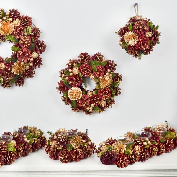 Party Supplies Decorative Flowers Wreaths and Plants Handcrafted Natural Pinecone Wood Flower Wreath for Christmas Decoration$5.89