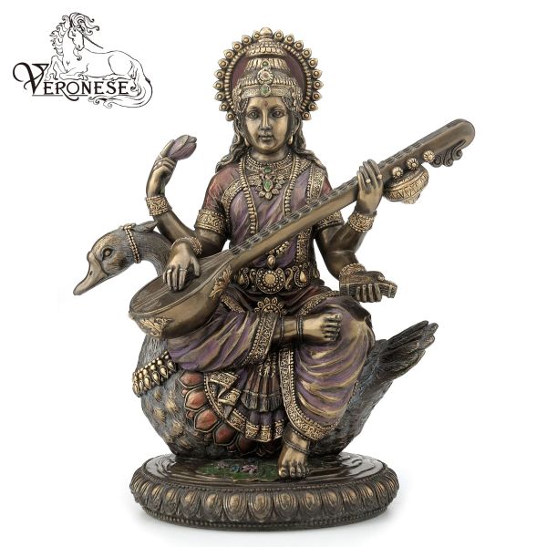 VERONESE DESIGN-SARASWATI on SWAN-HINDU GODDESS of KNOWLEDGE-HAND-PAINTED LUXURY HOME DECORATION RESIN CRAFTS$23