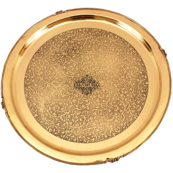 IndianArtVilla Pure Brass Embossed Design Round Serving Dining Plate-Tableware for Home Hotel & Restaurant Use$5.49