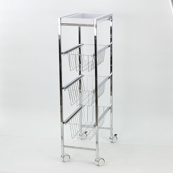 Durable 3-Tier MDF Board Metal Shelves Four-Wheel Powder Coating Roll Container Home Storage Platform for Hand Carts Trolleys$41.39