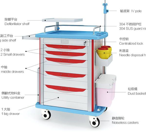 Jh-Et850-01hot Sale Hospital Crash Cart Emergency Trolleys Equipment$320