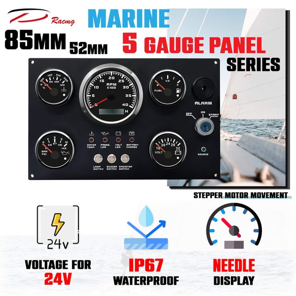 85mm Black Faceplate with White LED 24V 5 Gauges Panel Set High Marine Boat Engine Instrument Gauge Sensors for Auto Meter$1