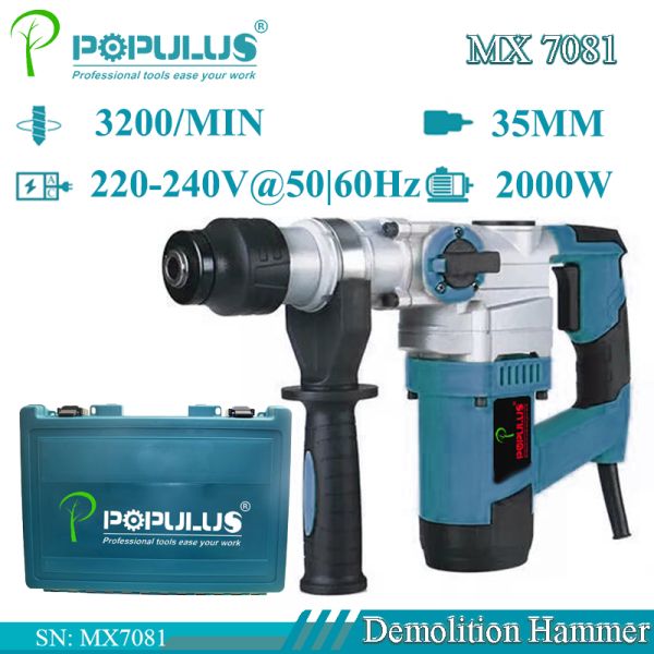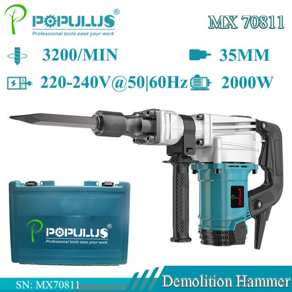 Populus New Arrival Industrial Quality pH65 Demolition Hammer Power Tools 2000W Industrial Quality Hammer for Indian Market$0.99