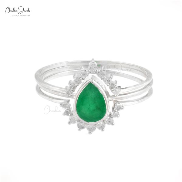 New Arrival 7x5mm Pear Cut Zambian Emerald & Diamond Halo Stacking Ring With 14k Fine White Gold Jewelry Wholesale Rings For Her$430
