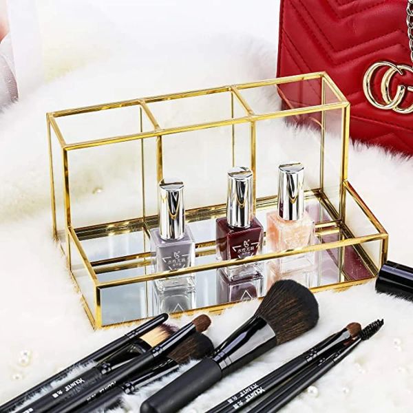 Wholesale Gold Color Restaurant Glass Dessert Tray Customized Shape Vanity Jewelry Tray for Weddings Events Elegant Design India$15.76
