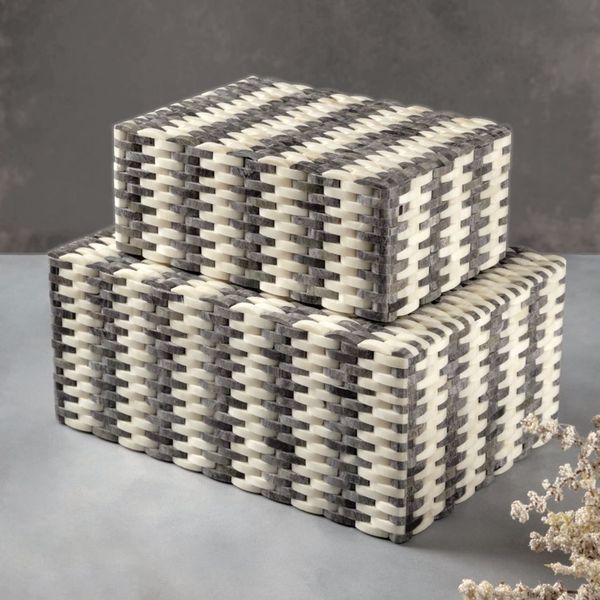 Luxury Solid Bone & Resin Square Pattern Classic Rectangle Jewelry Box with Embossed Pasting India$12