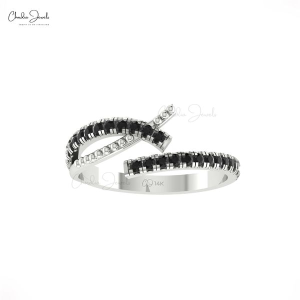 New Arrival 2025 Natural 1.5mm Round Cut Black Diamond Bypass Ring 14k Solid Gold Adjustable Cross Ring For Her Wholesale India$347