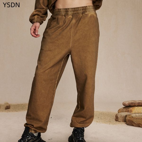 Aiqi Custom Men's Vintage Streetwear Trousers Medium Grey Acid Washed 360GSM Heavy Cotton Jogger Pants with High Waist OEM ODM$7