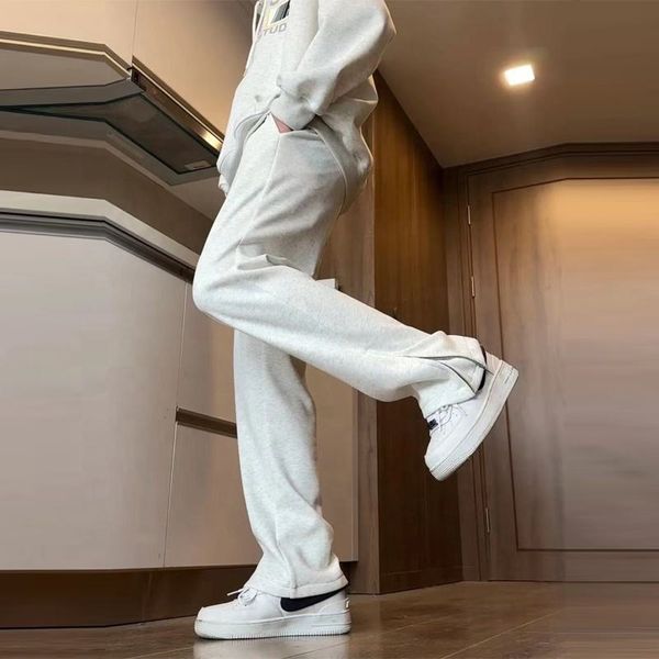 100% Cotton French Terry Blank Plain Cotton Joggers Pants Straight-Leg Loose Fit Zipper Ankles Baggy Joggers Men$7.25