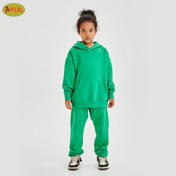 Bulk Custom Print 320g French Terry Cloth Hoodies with Pocket Kids Sweatsuit Sets Unisex Kids Jogger Sets$13.8
