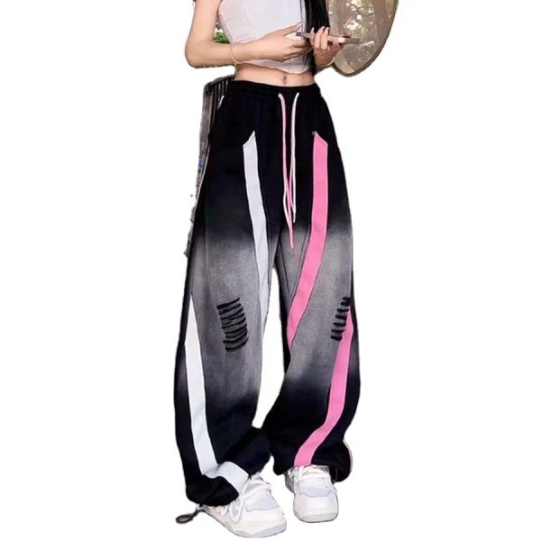 Custom Heavyweight Women's Acid Wash Sweatpants 3D Puff Printing Color Contrast Splicing Oversized Wide Leg Pants for Winter$3.5
