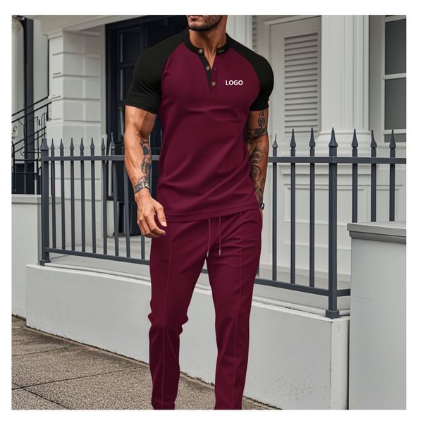 Two Piece Set US Size Custom Logo Short Sleeve Casual Outfits Polo Jogging Suit Tracksuit T Shirt With Pants Sets for Men$7.88